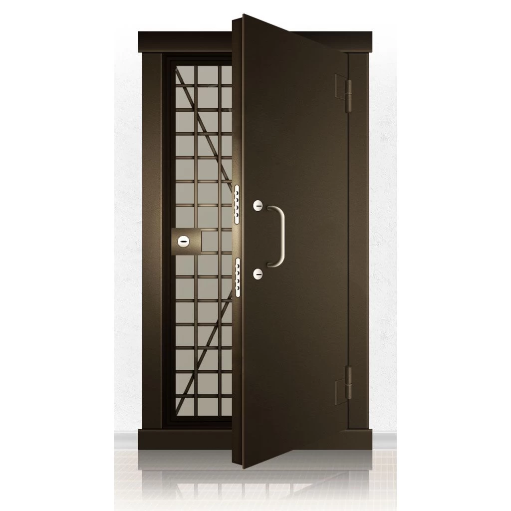 Металлические двери КХО и КХН представляют собой входные блоки, обладающие высоким уровнем взломостойкости и состоят из трех основных элементов: усиленного каркаса, сплошного металлического полотна и решетчатой двери. Дверной блок изготавливается из стального уголка 100*100 мм. Места крепления блока к стене цементируются и закрываются стальными наличниками шириной 40 мм. Крепеж заходит вглубь стены на 80 мм. В конструкции внешней створки монтируются ребра жесткости, для обшивки используется сталь толщиной не менее 3 мм. Внутренняя решетка изготавливается из прутка диаметром 16 мм. Размер ячеек решетки должен составлять не более 15 на 15 см. В точках пересечения прутья надежно приваривают друг к другу. В КХО и КХН необходимо поддерживать определенную температуру и влажность. Для этого внутреннее пространство глухой двери заполняется теплоизоляционным материалом, а по периметру двери приклеивается уплотнитель. Такие двери оборудуются замками с повышенным уровнем взломостойкости. Специализированные двери КХО и КХН в Томарях могут быть оснащены сигнализацией, в конструкции могут быть проушины для навесного замка и элементами для опечатывания. Если идет речь о двери в комнату хранения оружия, в створке оборудуется окно для выдачи оружия и спец. средств, которое накрывается стальной дверцей.